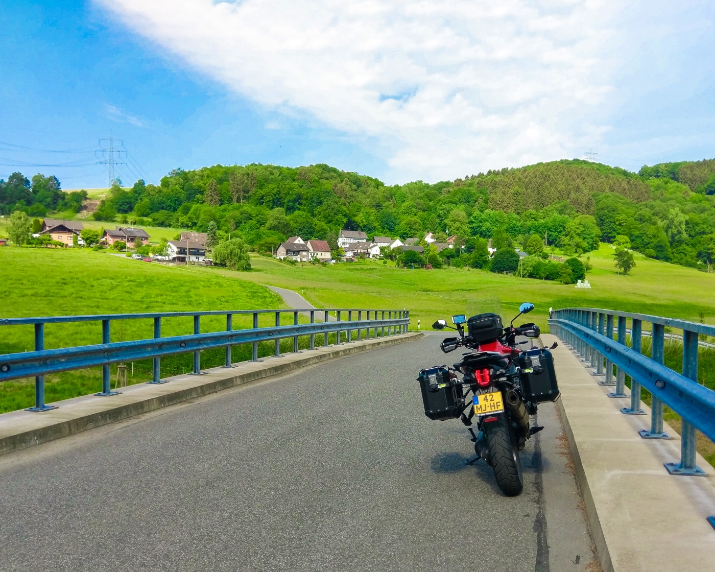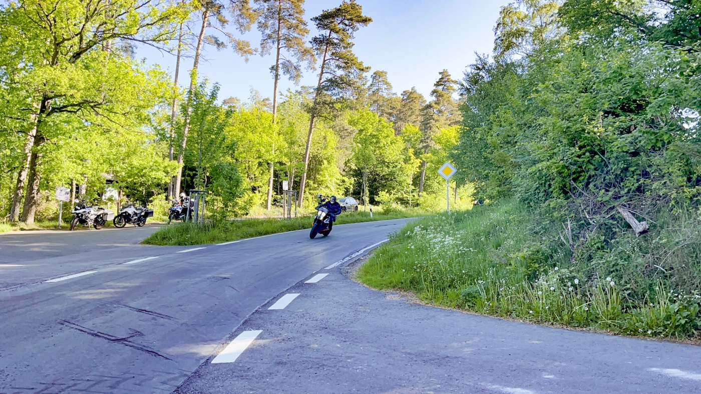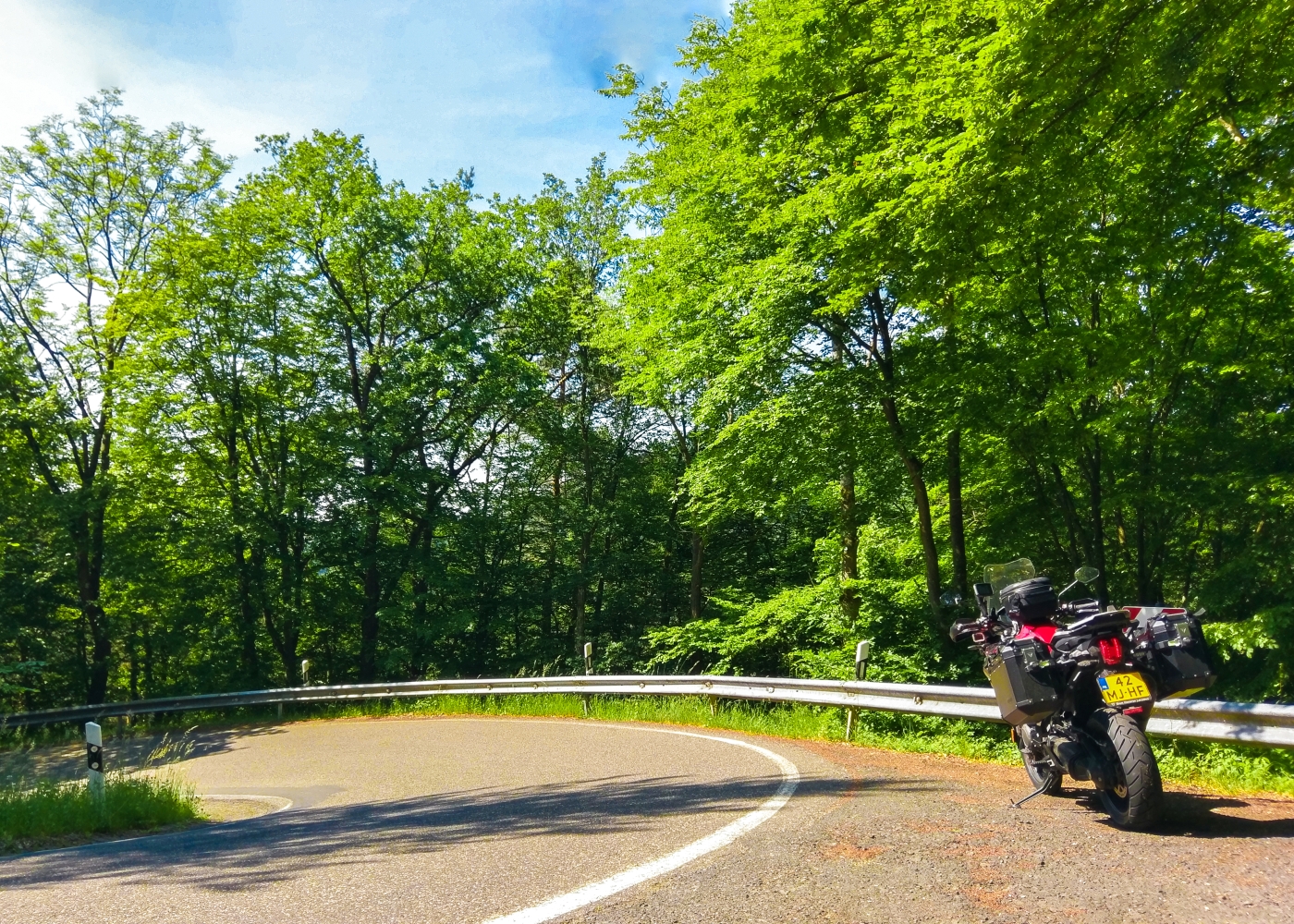 De motor kan geparkeerd worden op de parkeerplaats voor het hotel.