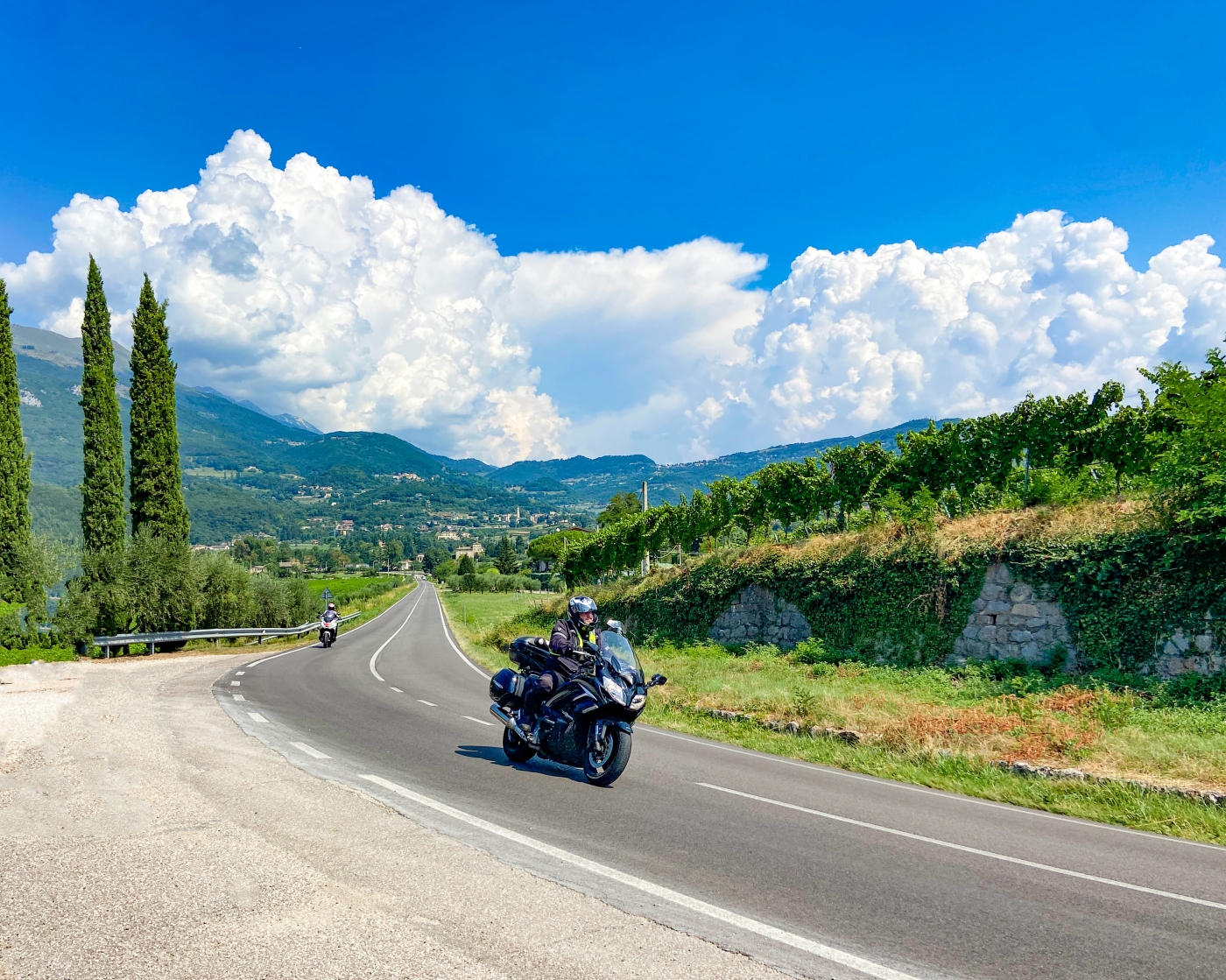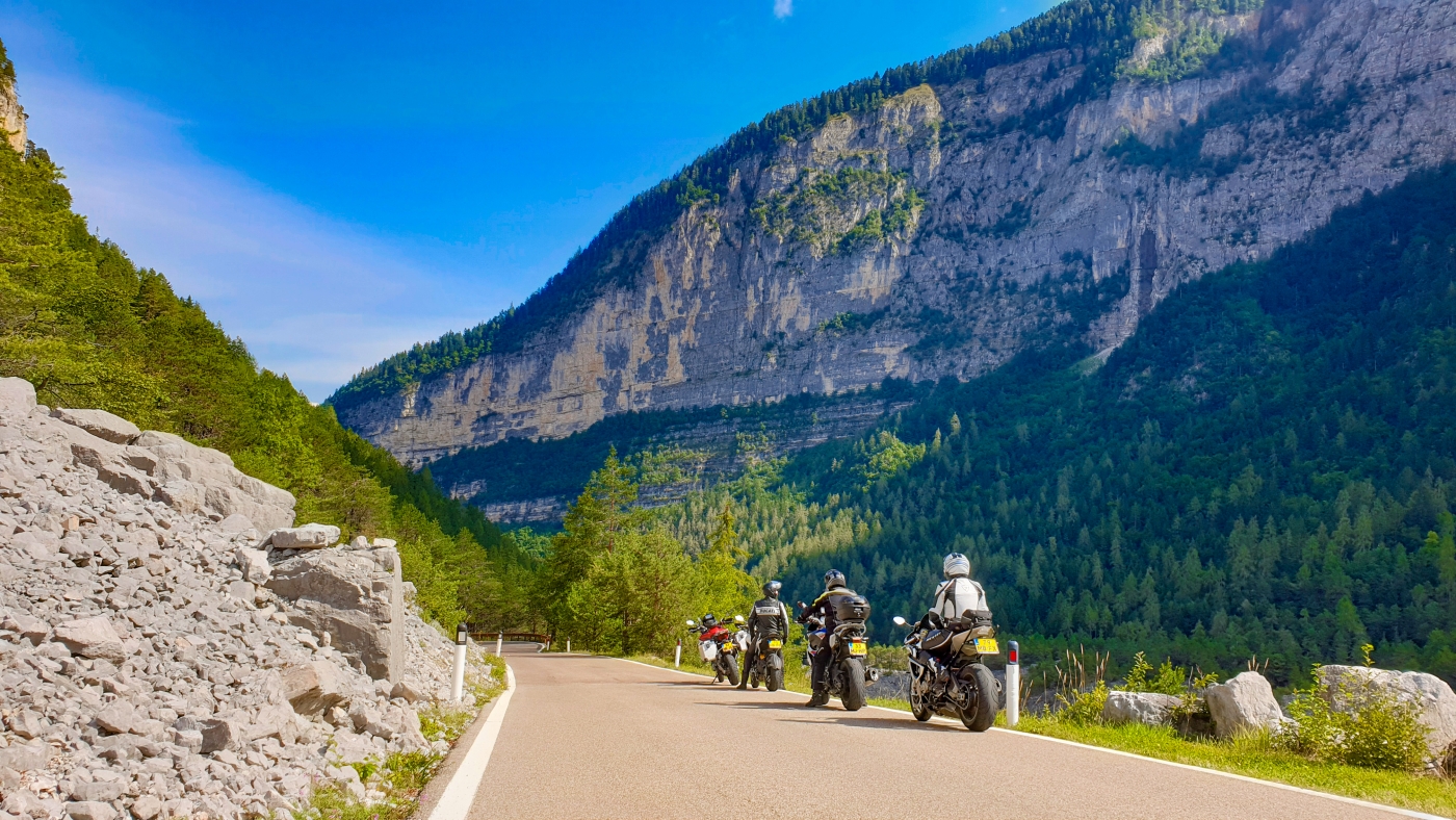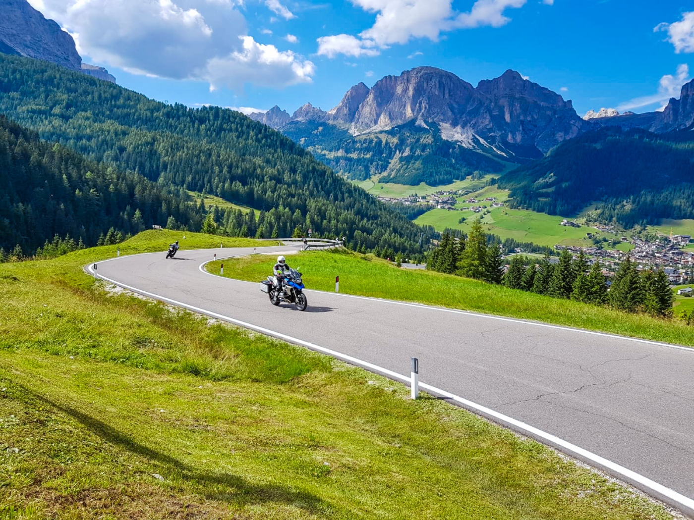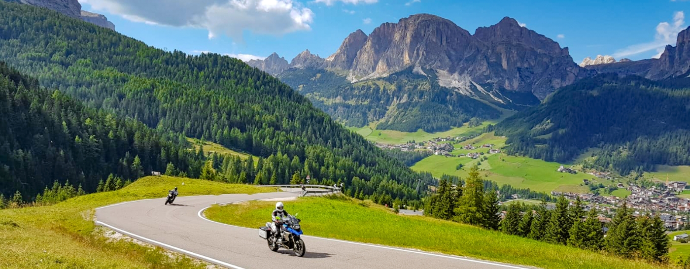 Vandaag rijd je een spectaculaire motorroute door het Parco Naturale Paneveggio en de Pale di San Martino, een absolute droom voor iedereen die van motorrijden in de Dolomieten houdt. Deze eerste dag van je motorreis staat in het teken van beroemde Dolomieten passen, uitdagende Alpenpassen en eindeloze bochten. Na een uurtje sturen bereik je de Passo Lavazé op 1808 meter hoogte, bekend om zijn extreme hoogteverschillen en een stijgingspercentage van 18 procent. Hier zie je nog duidelijk de sporen van het noodweer van 2018 waarbij miljoenen bomen omwaaiden, een indrukwekkend gezicht tijdens je motorvakantie Italië. Daarna volgen nog meer legendarische bergpassen: de Passo Niger, Passo Karer, Passo Valles, Passo Rolle, Passo Brocon en de Forcella. Elke pas biedt een unieke combinatie van bochten, panorama’s en rijplezier, waardoor dit een perfecte dag is voor iedereen die houdt van sportief motorrijden en genieten van de mooiste wegen van Noord-Italië.