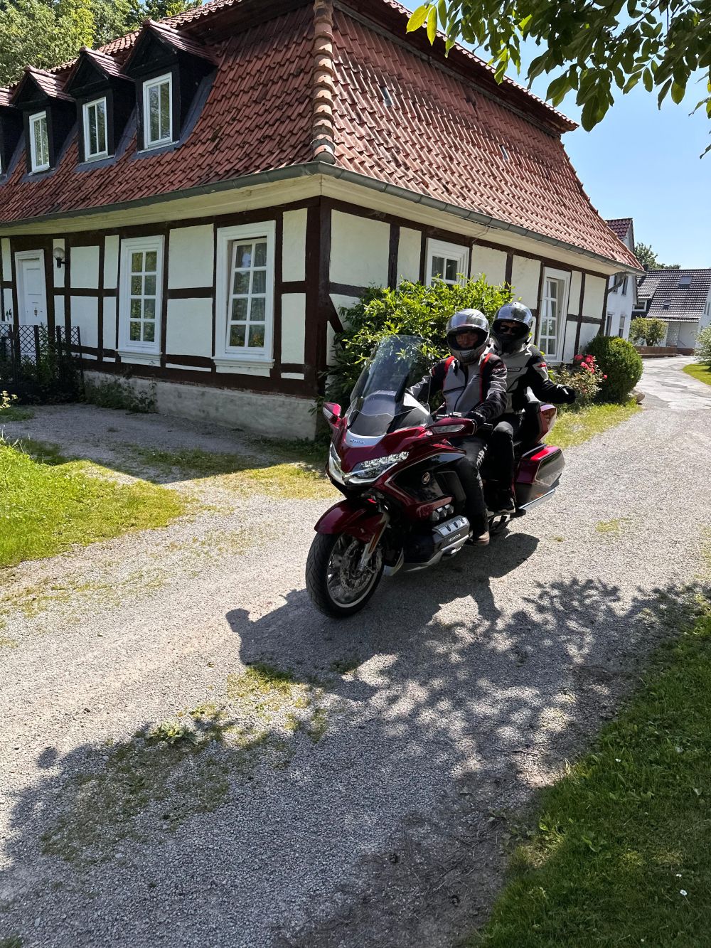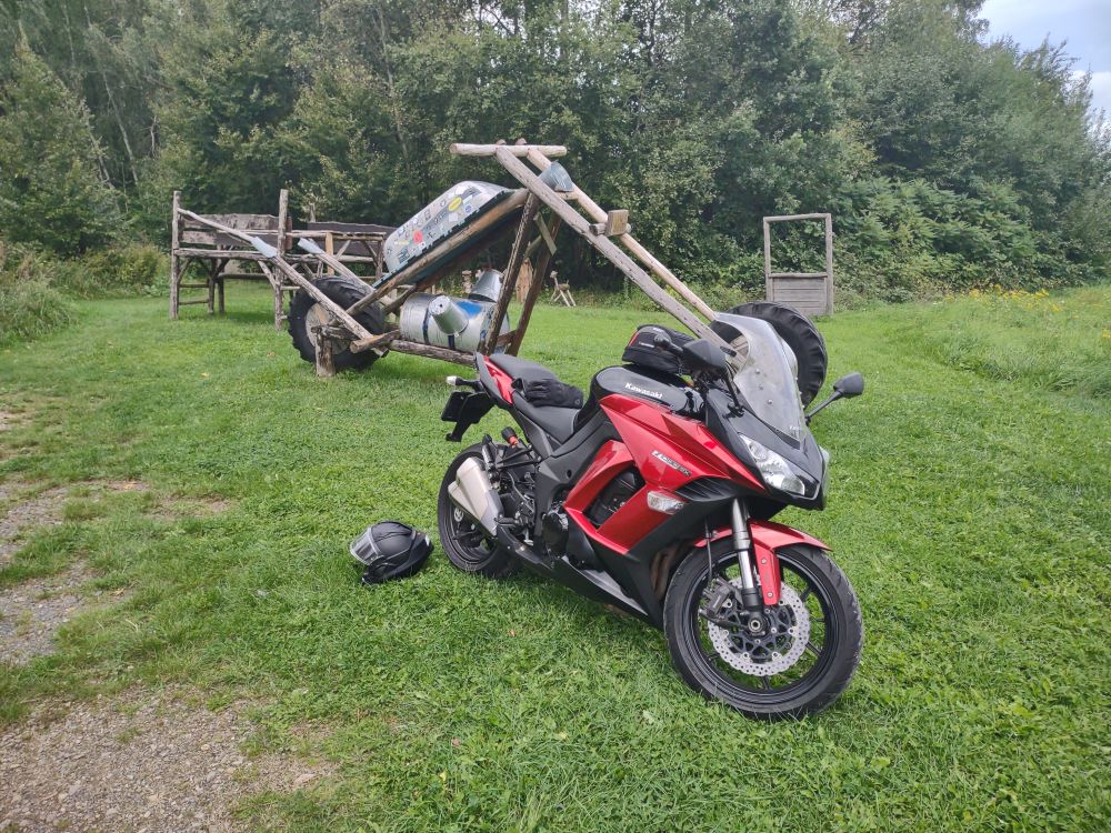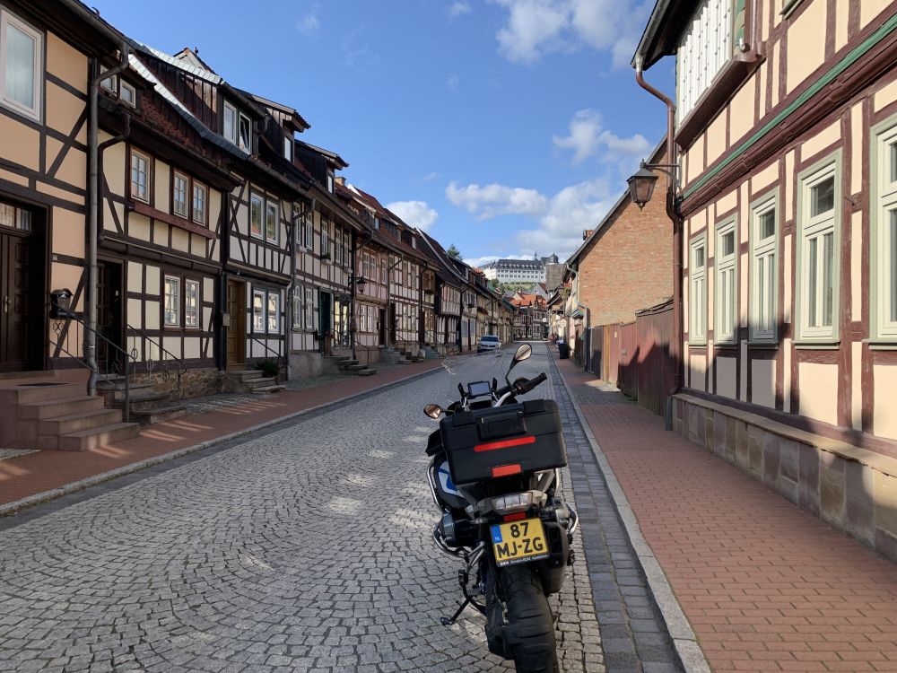 De motor krijgt een plekje in een overdekte ruimte van het hotel.