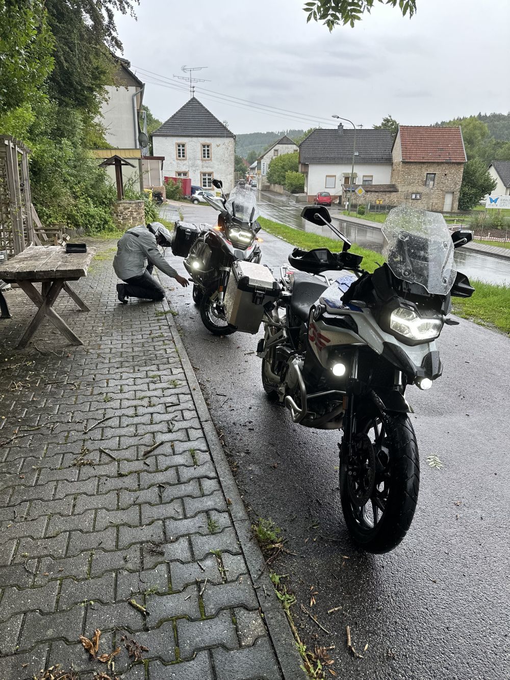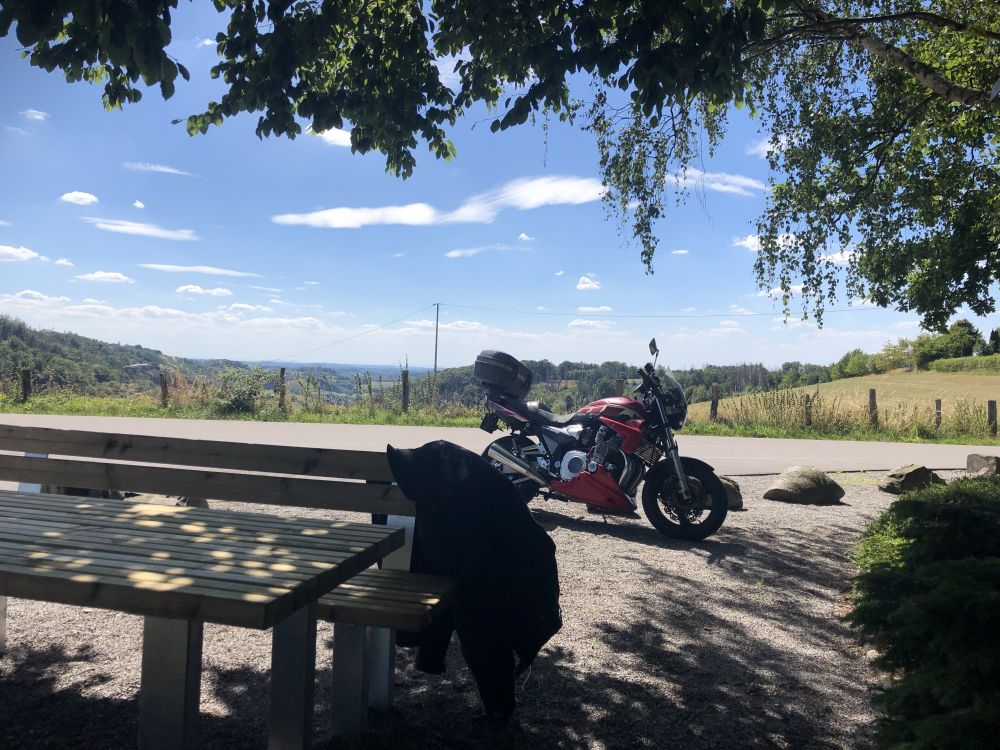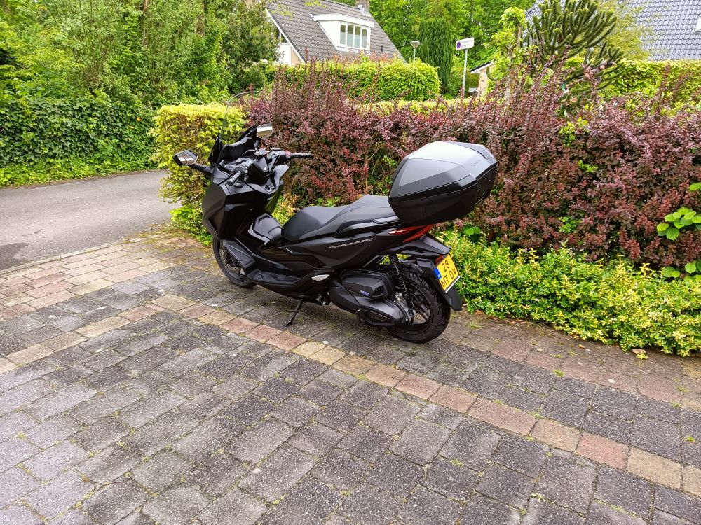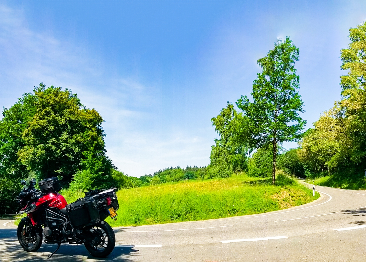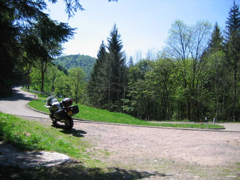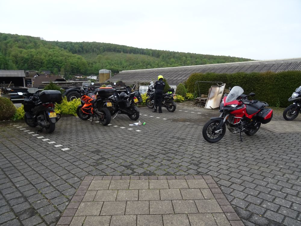 De motor kan geparkeerd worden op de parkeerplaats voor het hotel.