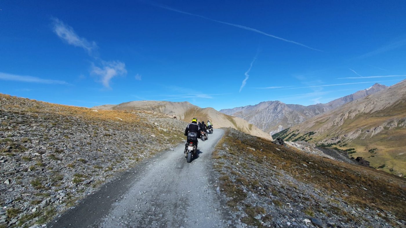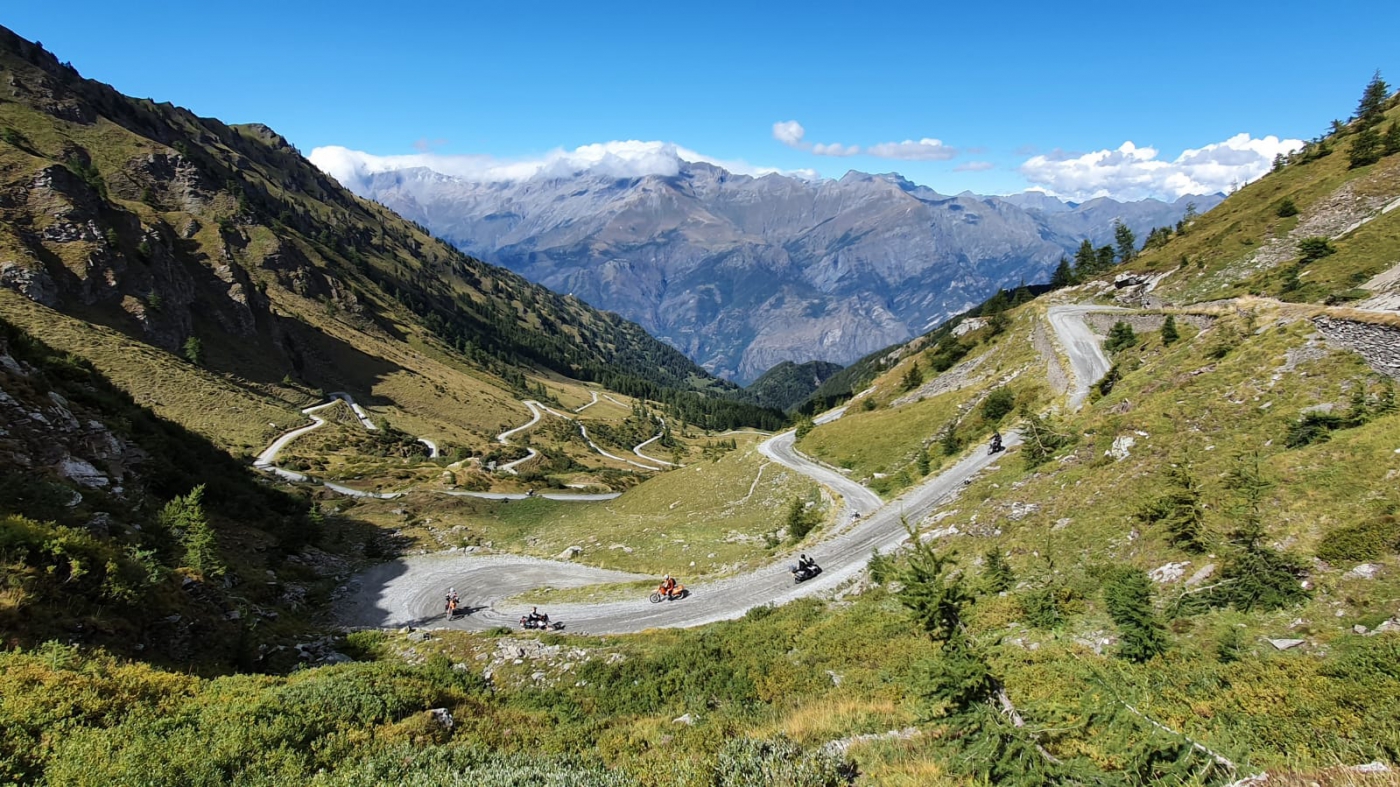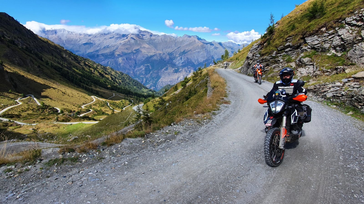 Na een stevig ontbijt is het tijd voor je eerste rit. Zodra je het dorp uit rijdt, begint meteen de eerste onverharde pas: Colle Basset (2424 m). Vervolgens rijd je Colle delle Finestre (2176 m), deels asfalt en deels gravel, en daarna de beroemde Assietta Kammstrasse. Deze 36 km lange route verbindt meerdere collen, waaronder Colle Lauson en Colle Bourget, en biedt spectaculaire uitzichten. Aan het eind van de dag rijd je Colle Basset terug naar beneden. Een prachtige eerste dag op de motor met volop stuurwerk, historie en panoramische vergezichten.