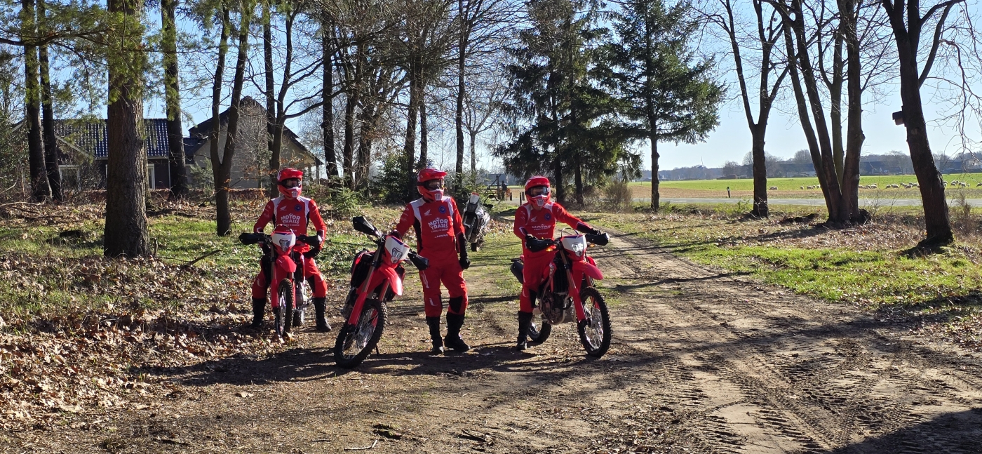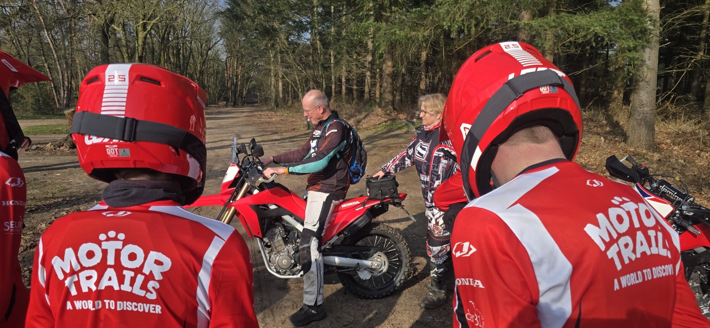 Bij deze Offroad Experience ga je op pad met een kleine groep (maximaal 7 deelnemers) en 2 begeleiders, om in alle rust en met persoonlijke aandacht jouw eerste offroadmeters te maken. We beginnen met koffie, thee en wat lekkers, maken kennis en dan: op de motor. Deze dag is inclusief huurmotor (Honda CRF 300 L (2026)), dus je hoeft zelf geen offroad motor te hebben.
